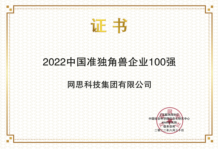 6月21日,网思科技凭借高成长、高潜力、领先的核心技术和创新的商业模式强势入选「2022中国准独角兽企业TOP100」榜单,名列第28位。该榜单由中国科学院《互联网周刊》联合德本咨询、eNet研究院共同发布,此次共同入选榜单的还包括中储智运、云徙科技、南芯半导体等拥有国资委、阿里、腾讯、红杉背景的知名企业。此次登